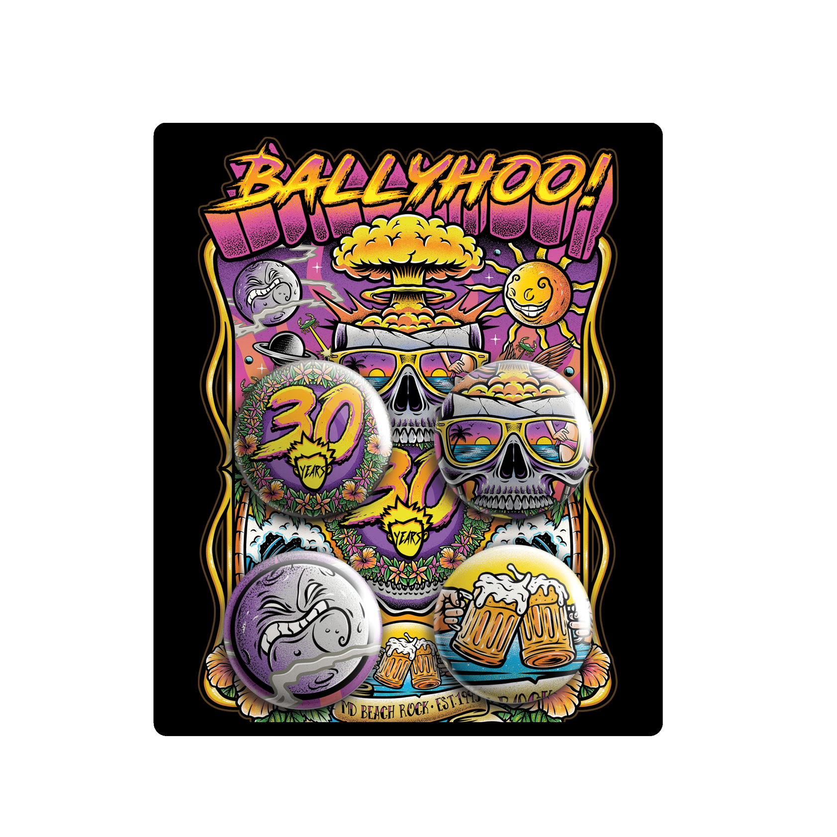 Pack includes four 1.5" buttons featuring art from the 30 Year Anniversary design.