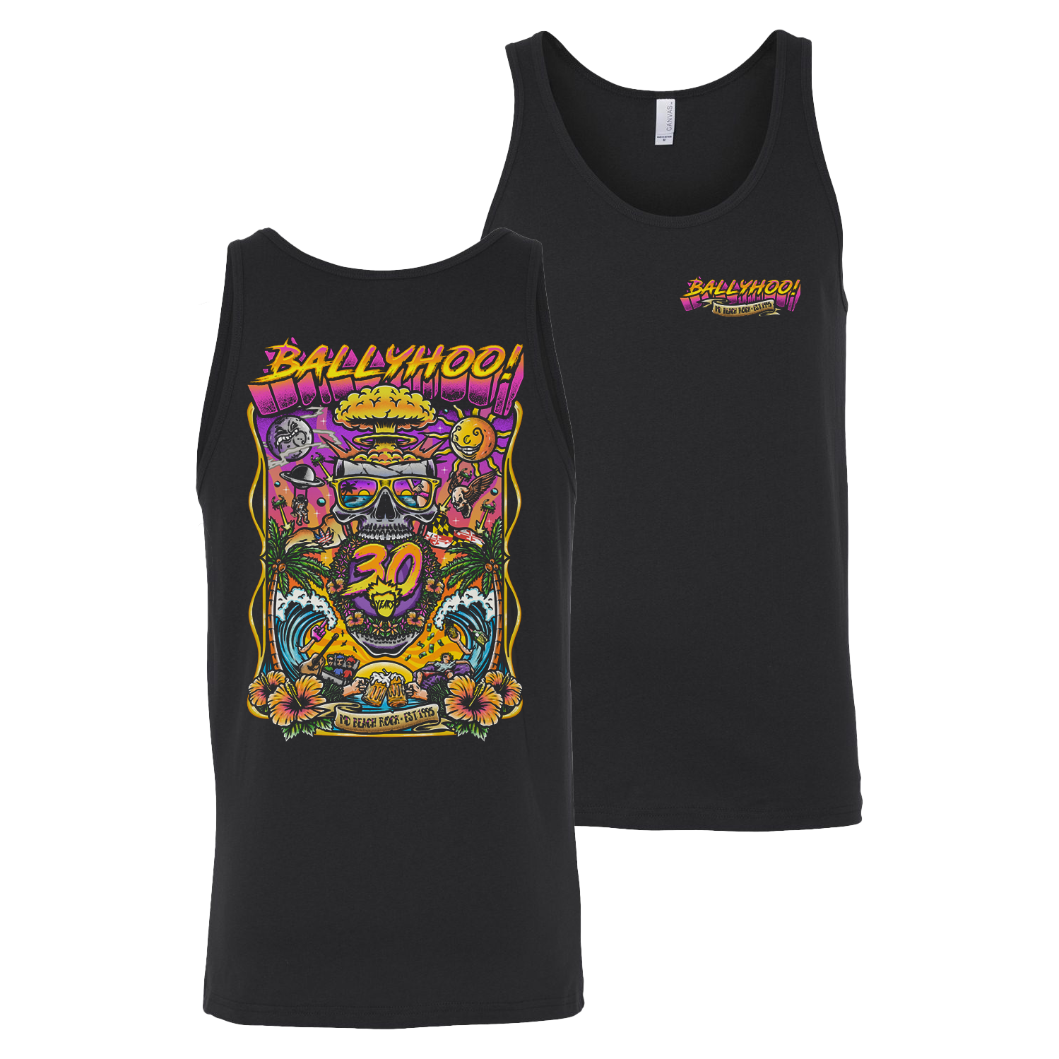 Celebrate three decades of Ballyhoo! with the 30yr Anniversary Tank, a must-have for every Ballyhooligan. This tank captures the spirit of Maryland beach rock, perfect for showing your love and loyalty to the band. Wear it proudly and join the celebration of 30 years of great music and good vibes.